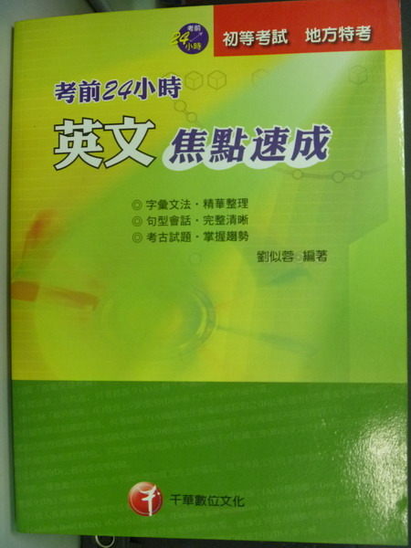 | 購買 全店購物滿 1000 元(含)以上免運費 【書寶二手書T9/進修考試_QGT】考前24HR英文焦點速成_4/e_劉似蓉_附光碟:c96160758,店家為 書寶二手書店 | 樂天市場購物網 - 售價:39 我要購買 |