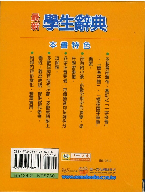 | 購買 85折 世一最新學生辭典B5124-2:9789861938714,店家為 92號BOOK櫃-參考書專賣店 | 樂天市場購物網 - 台灣 售價:221 我要購買 |