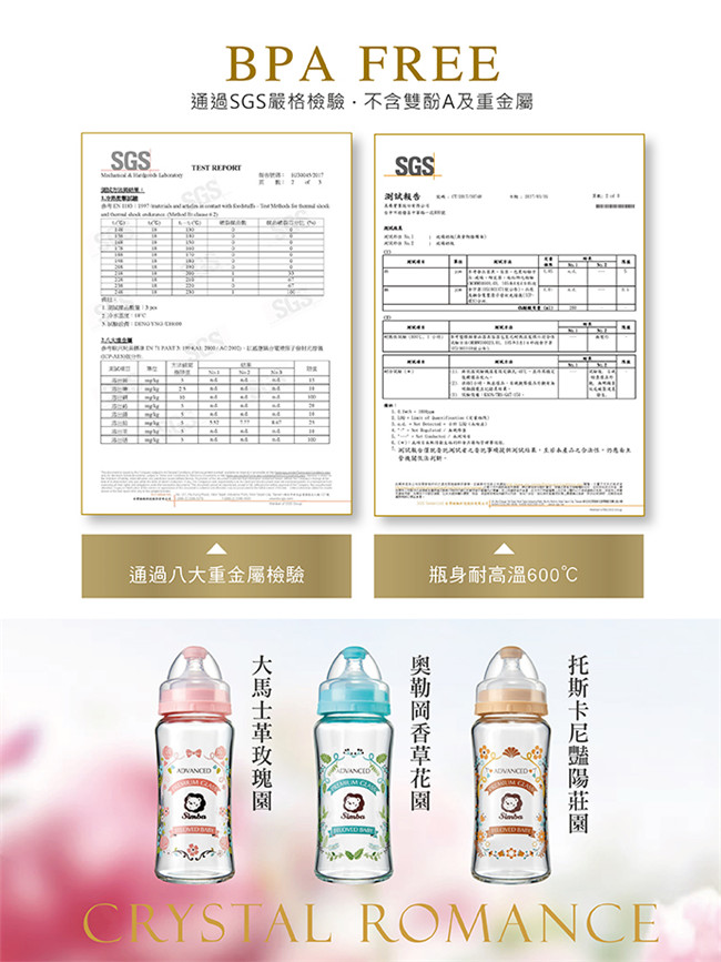 ![]() ![]() ![]() ![]() ![]() ![]() ![]() ![]() ●產品特色: 1.瓶身嚴選耐熱玻璃製成,耐高溫600℃,冷熱急變溫差150℃。 2.瓶身高透明度,容量刻度清晰可見。 3.奶瓶內壁光滑,不卡奶垢好清洗。 4.輕巧瓶身好攜帶。 5.通過國際SGS嚴格檢驗,不含雙酚A。 6.奶瓶新寓意,精緻印花完美演繹媽媽的愛,與寶寶茁壯萌芽的生命力。 7.搭配母乳記憶超柔防脹氣標準十字孔S奶嘴。 材質: 聚丙烯(-20℃~+100℃) 奶瓶:硼矽酸玻璃(-40℃~+600℃) 奶嘴:矽膠(-40℃~+150℃) 口徑:寬口口徑 容量:270ml 產地:台灣製造 最新商品評價 查看全部評價 (共 1 筆評價)發表者 Ni*******, 2017/06/16 11:26:56 商品品質好!!!!!! |